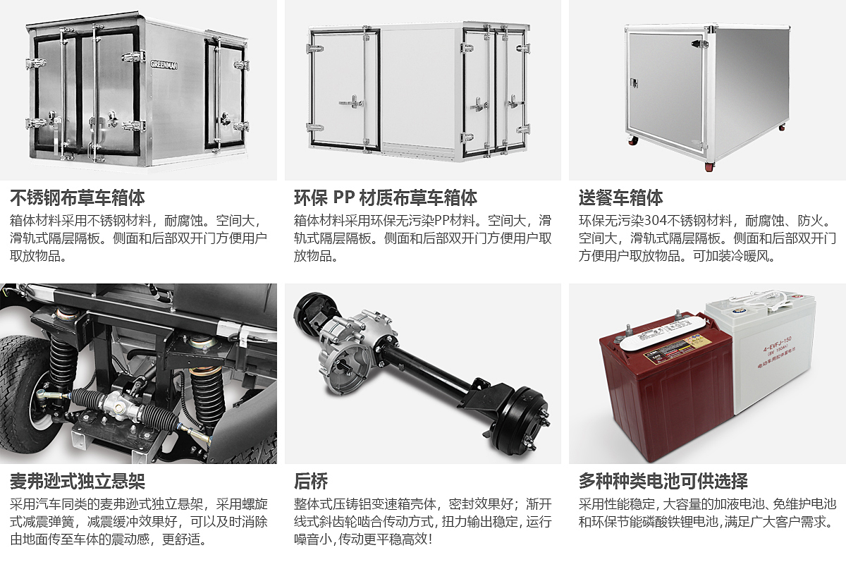 GREENMAN 布草車/送餐車采用大功率交流電系統(tǒng)動(dòng)力強(qiáng)勁,四輪液壓剎車+電子駐車安全可靠,